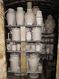I helped with loading Joseph's kiln yesterday, which is always an experience and fascinating to watch the loading, particularly the "big pots."
